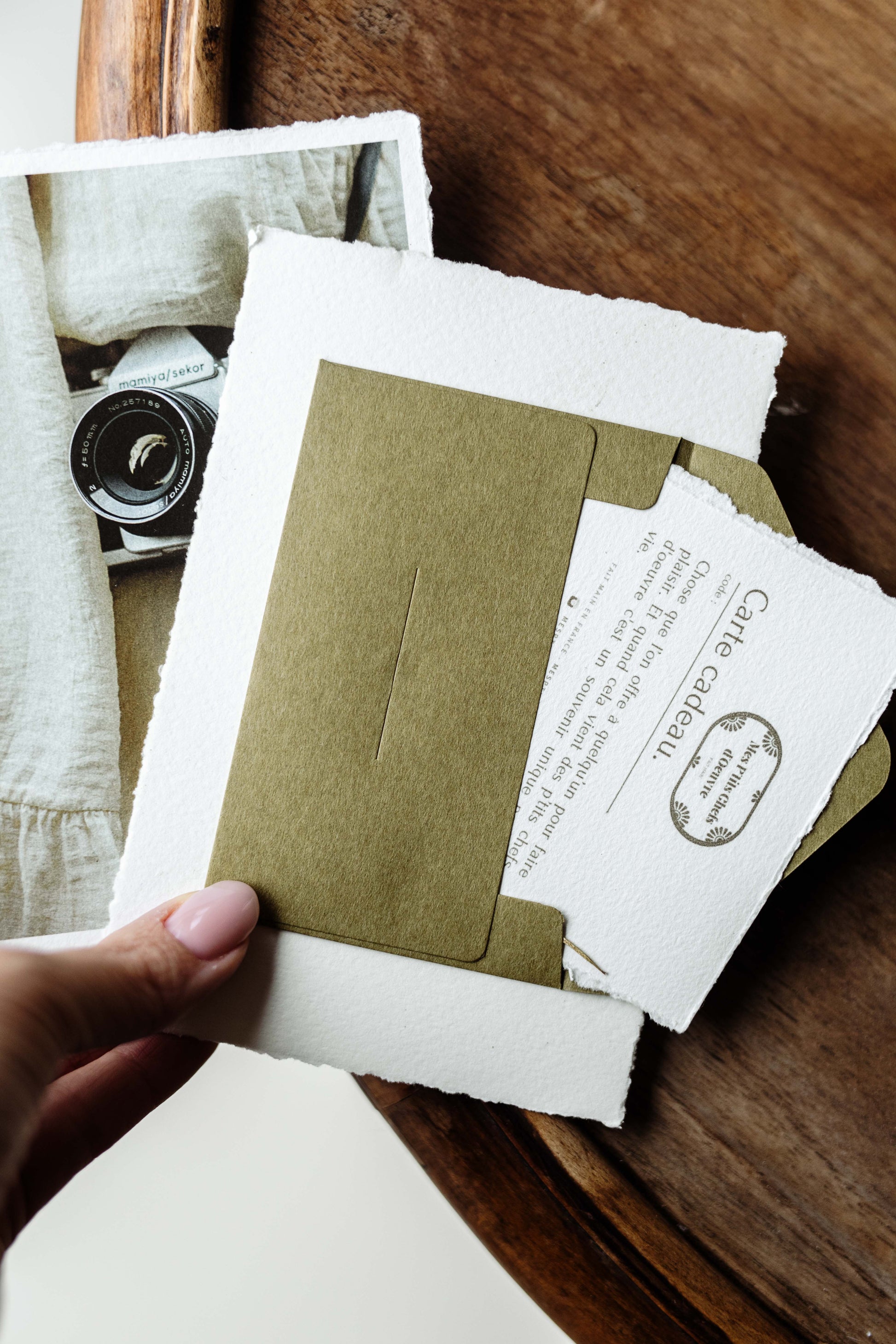 Une pièce unique pensée comme une impression à offrir, dont le dos renferme délicatement un bon cadeau personnalisé. Vous pouvez également y laisser un message, quelques mots précieux pour accompagner l’émotion de votre geste.